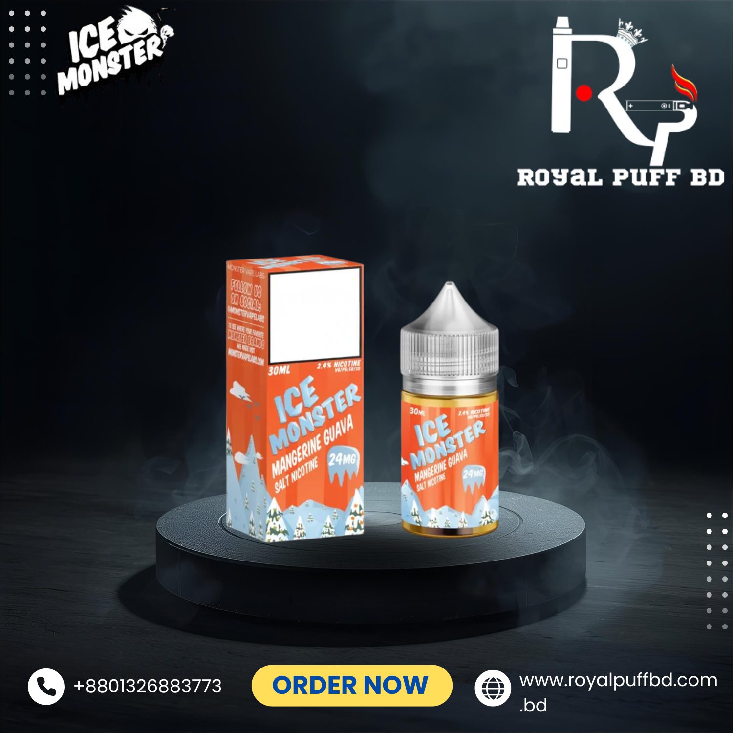 Buy Mangerine Guava Ice Monster Saltnic 30ml at Royal Puff BD — guaranteed authentic with fresh stock and fast delivery across Bangladesh.