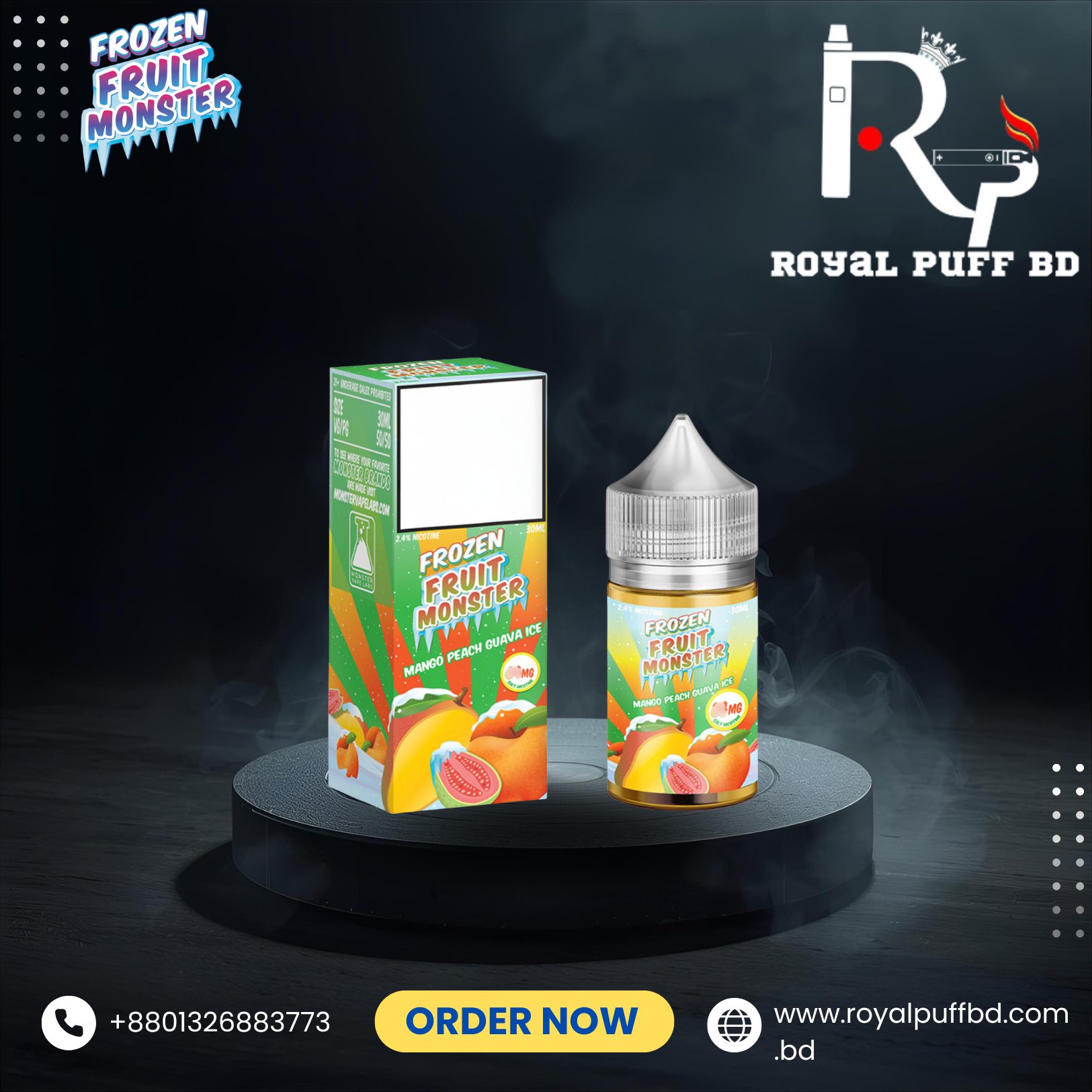Buy Mango Peach Guava by Frozen Fruit Monster Saltnic 30ml at Royal Puff BD — fresh stock, 100% genuine, and fast delivery across Bangladesh.