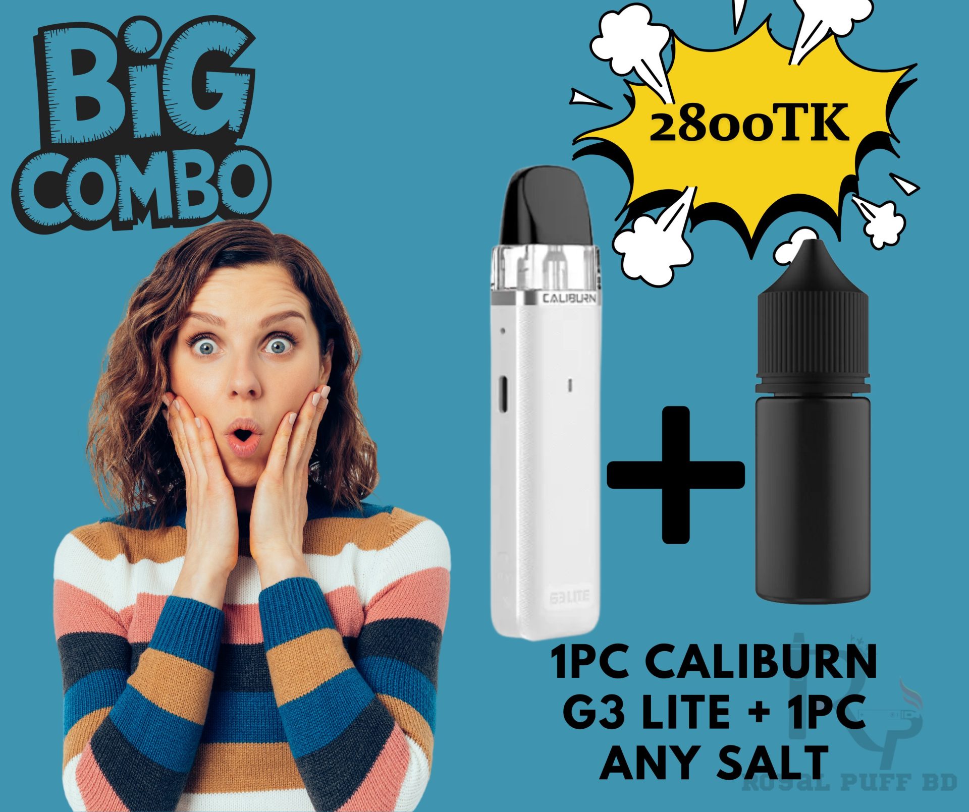 Caliburn G3 Lite combo price in Bangladesh, cheap vape deals BD, Caliburn G3 Lite with salt nic combo, vape starter kit Bangladesh, Royal Puff BD vape offer, salt nic e-liquid deal BD, best vape combo 2800 tk