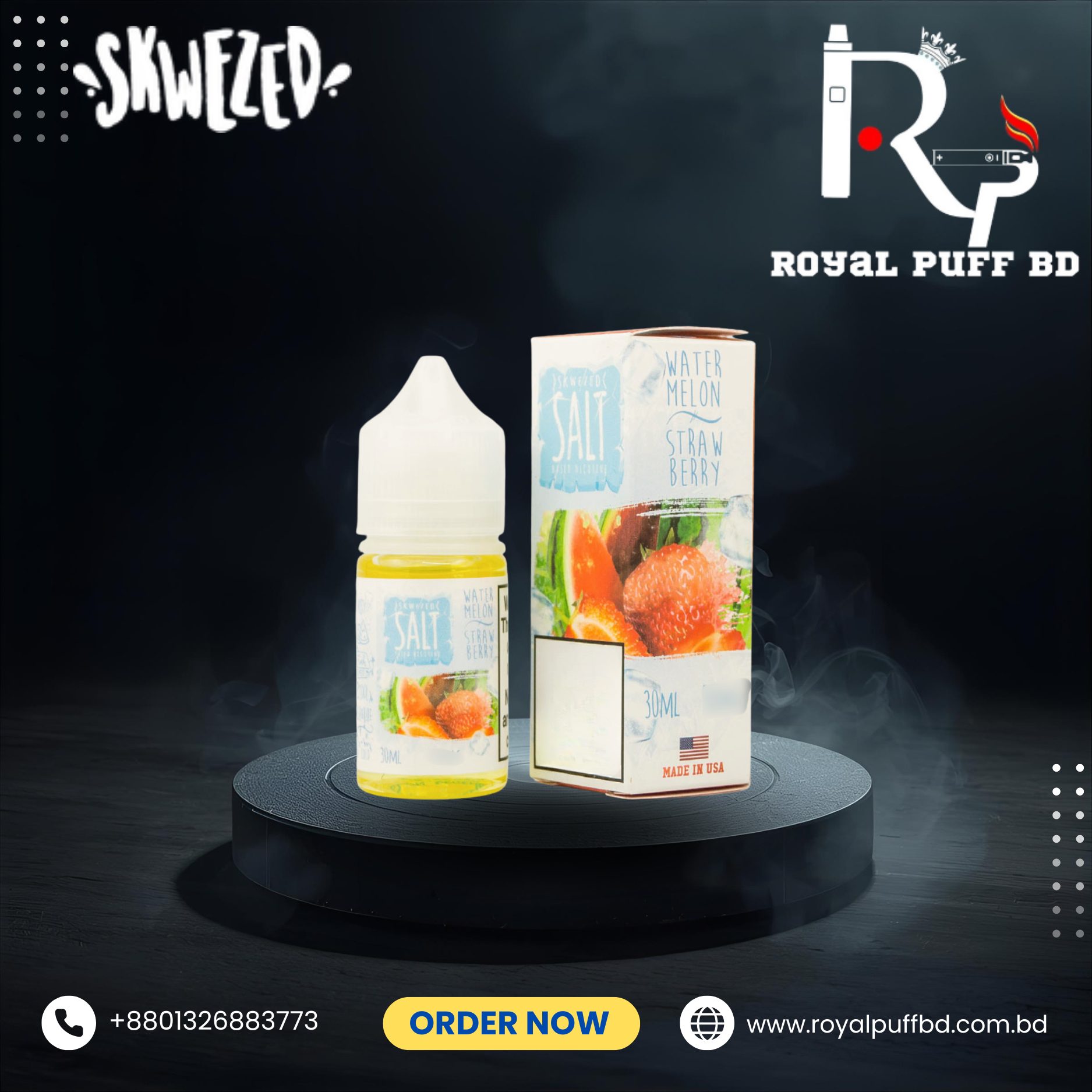Enjoy a refreshing fusion of juicy watermelon, sweet strawberry, and a cool icy kick with Watermelon Strawberry Ice Skwezed Saltnic 30ml, now in stock at Royal Puff BD. This fruity-ice blend delivers a smooth burst of summer sweetness, balanced perfectly with chilled menthol for a refreshing all-day vape. Watermelon Strawberry Ice Skwezed Saltnic 30ml